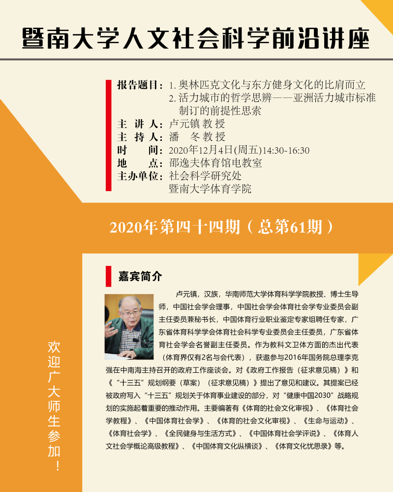 必威平台_必威(中国)一站式服务平台,人文社会科学前沿讲座2020年第四十四期(总第61期)