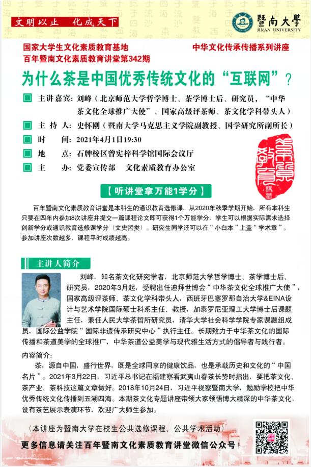 百年暨南文化素质教育讲堂第342期:为什么茶是中国优秀传统文化的“互联网”?