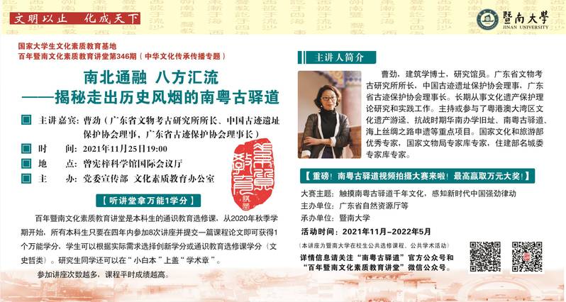 百年暨南文化素质教育讲堂第346期:南北通融 八方汇流 ——揭秘走出历史风烟的南粤古驿道