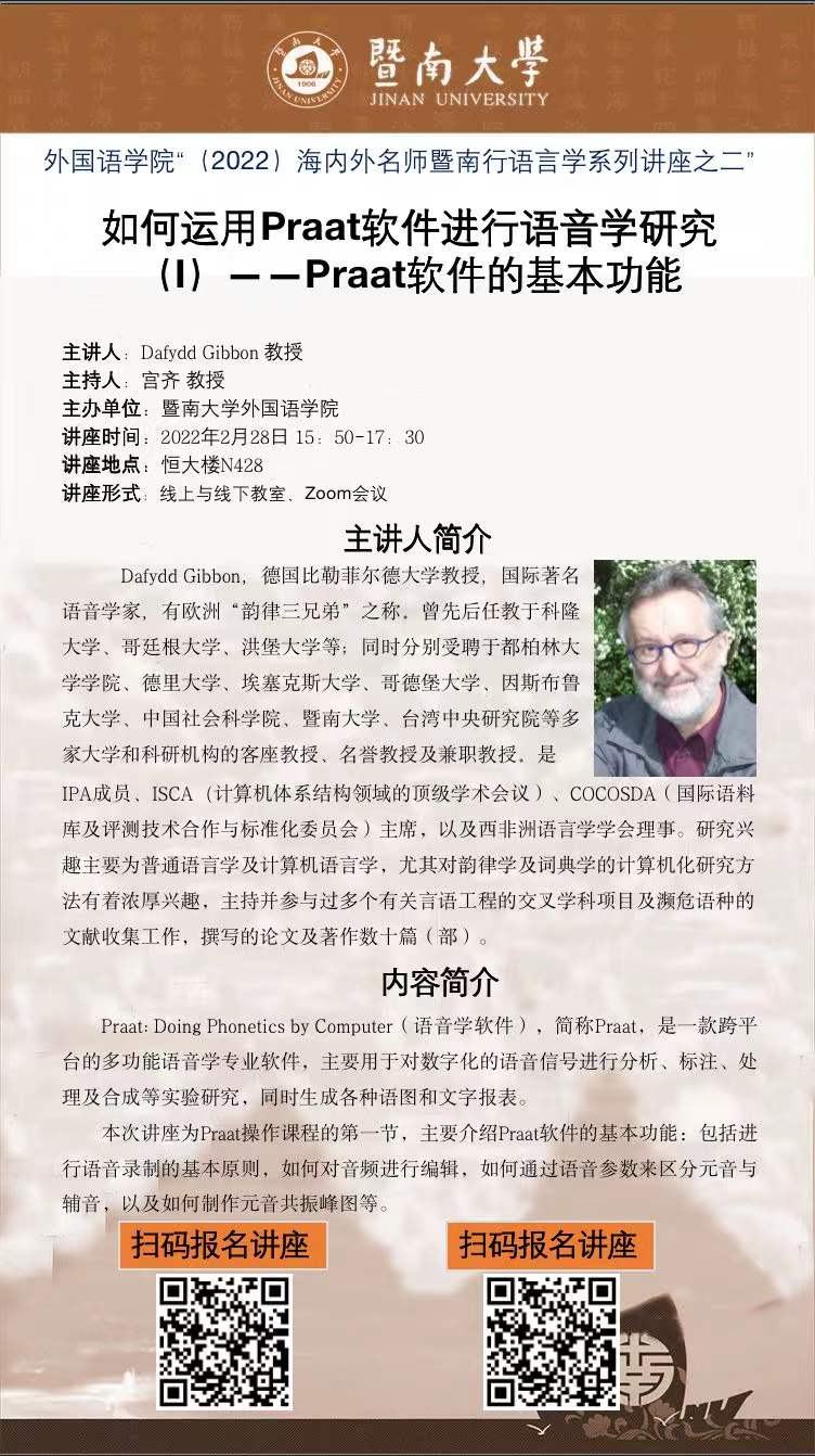 外国语学院“(2022)海内外名师暨南行语言学系列讲座之二”