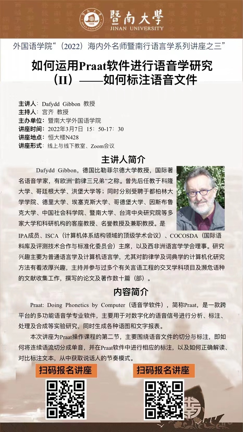 外国语学院“(2022)海内外名师暨南行语言学系列讲座之三”