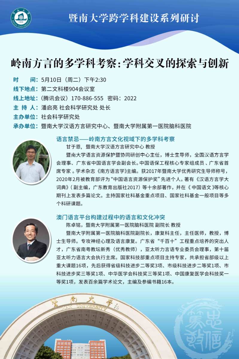 研讨主题:岭南方言的多学科考察:学科交叉的探索与创新