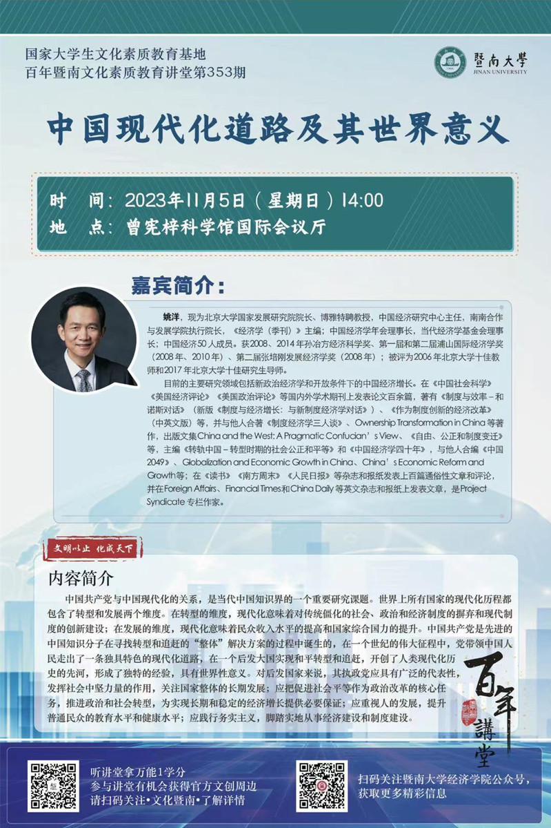 百年暨南文化素质教育讲堂第353期:姚洋:中国现代化道路及其世界意义