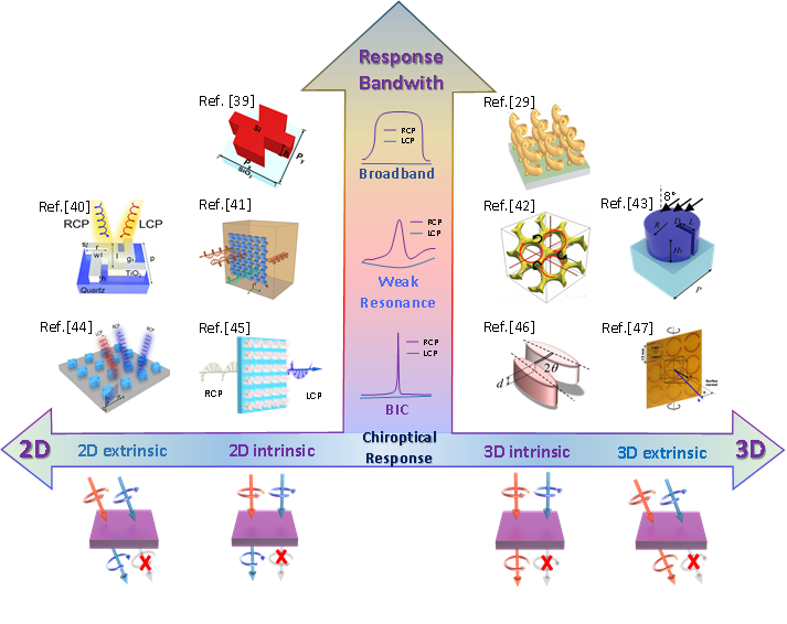 宽带、弱共振及连续域束缚态(BIC)强共振状态下手性光学超表面研究领域的涵盖内容