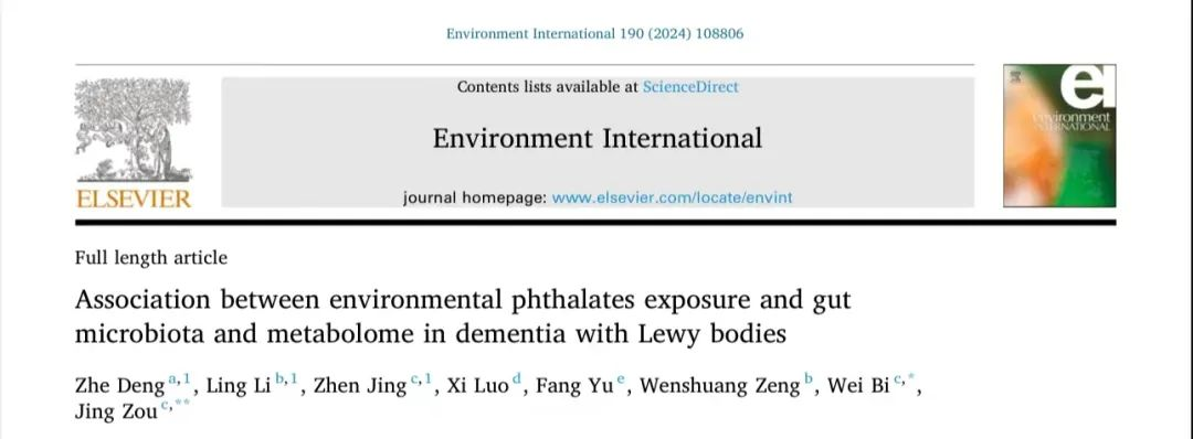 必威平台_必威(中国)一站式服务平台,融媒体中心讯 近日,附属第一医院毕伟/邹婧团队在环境领域顶级期刊Environment International(中科院一区TOP,2024 Jun 8)在线发表题为:“Association between environmental phthalates exposure and gut microbiota and metabolome in dementia with Lewy bodies”的研究论文。