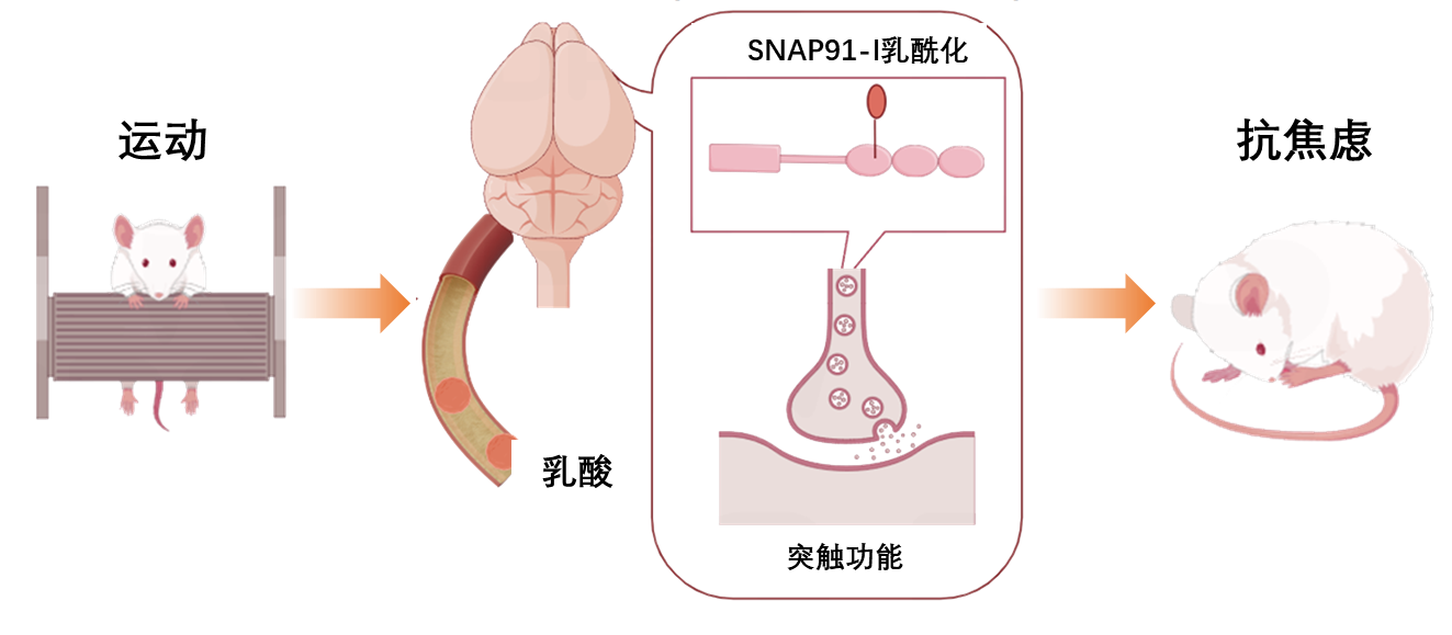综上,这项研究揭示了一条关键性“代谢-脑”通路,其中运动刺激组织产生的乳酸分子可通过影响SNAP91等突触蛋白的乳酰化修饰,改善mPFC突触结构和神经元活动性,缓解小鼠焦虑样行为。上述结果揭示乳酸这一能量分子在脑内的一条新的生物学机制,也为进一步研究神经组织中非组蛋白乳酰化修饰提供了参考。