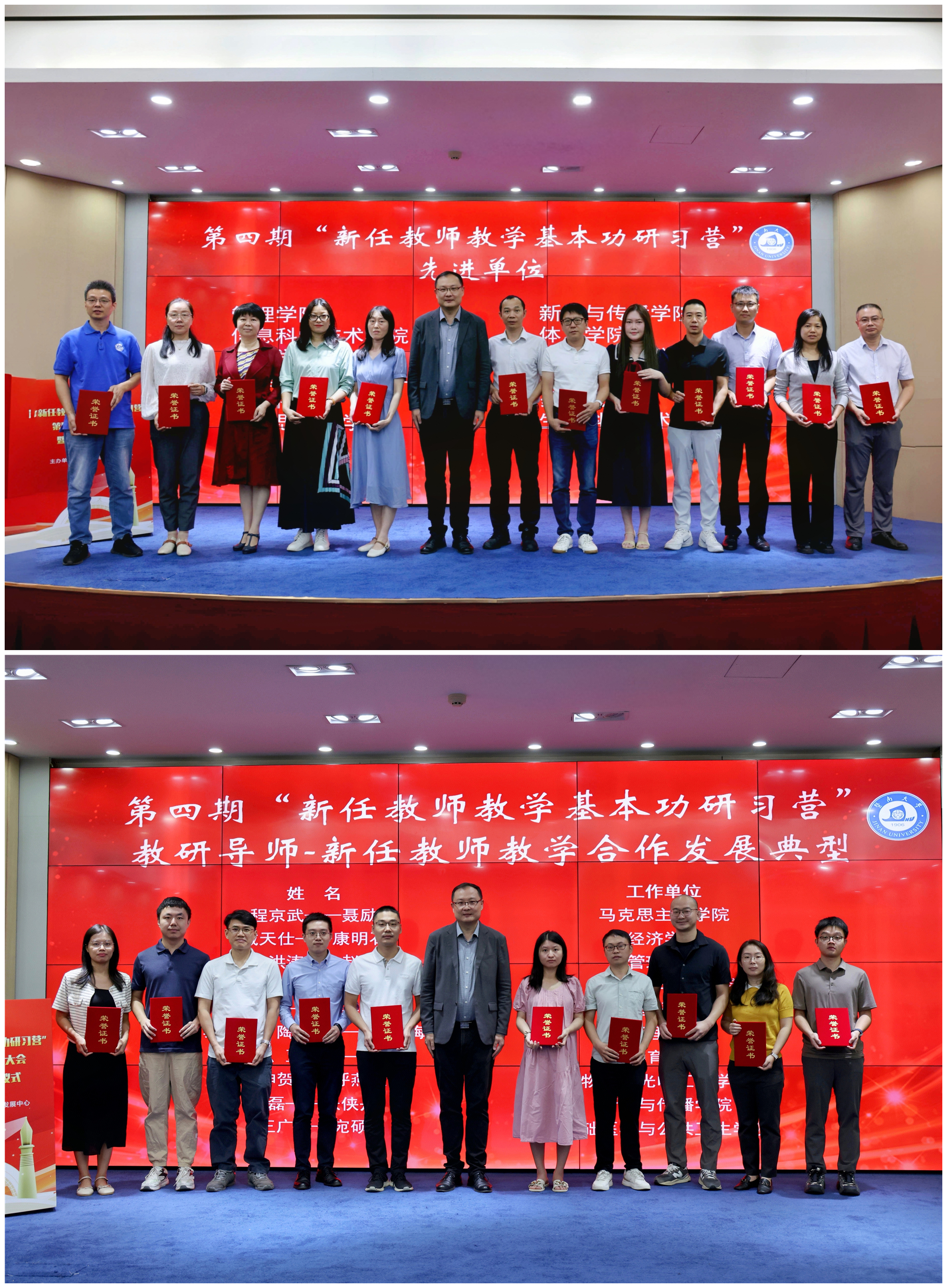 会议对第四期研习营12个先进单位和10对教学合作发展典型进行了表彰。物理与光电工程学院书记黄睿、马克思主义学院教师聂励作为先进代表分享了他们的经验做法和心得体会。