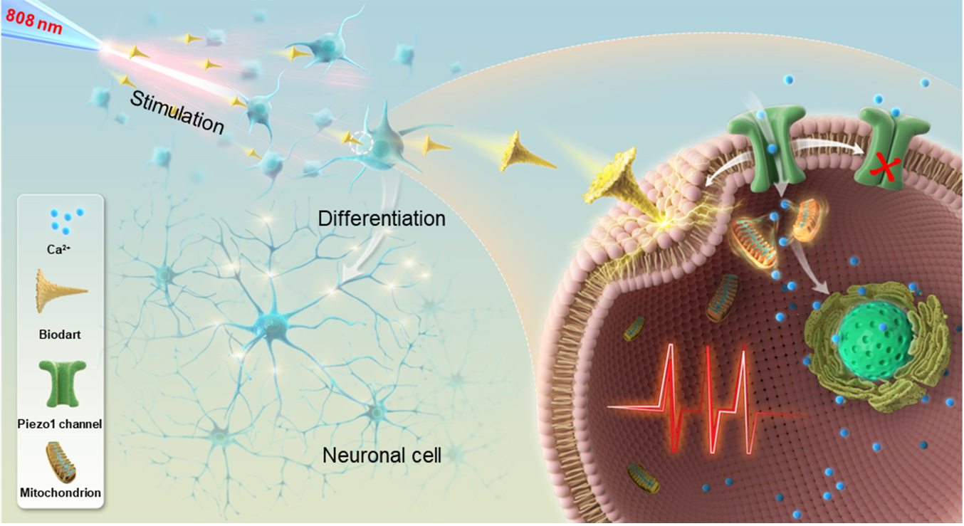 高时空分辨的神经激活与调控对于神经元信号传导及神经再生与回路重建至关重要,将有助于以更高精度理解神经元功能障碍,助力神经退行性疾病的精准有效治疗。然而,传统基于电、磁、超声刺激的神经调控技术存在空间分辨率低、细胞特异性低、无法针对单个神经元进行精准激活等问题。虽然光遗传技术极大地提高了神经激活的空间分辨率,但其复杂的基因修饰过程以及基因表达的不稳定性使得其在实际应用中具有很大挑战。因此,开发一种易于操作、高精度的非光遗传神经激活与调控技术对于更好地理解神经功能、调控神经生长及信号传导具有非常重要的意义。