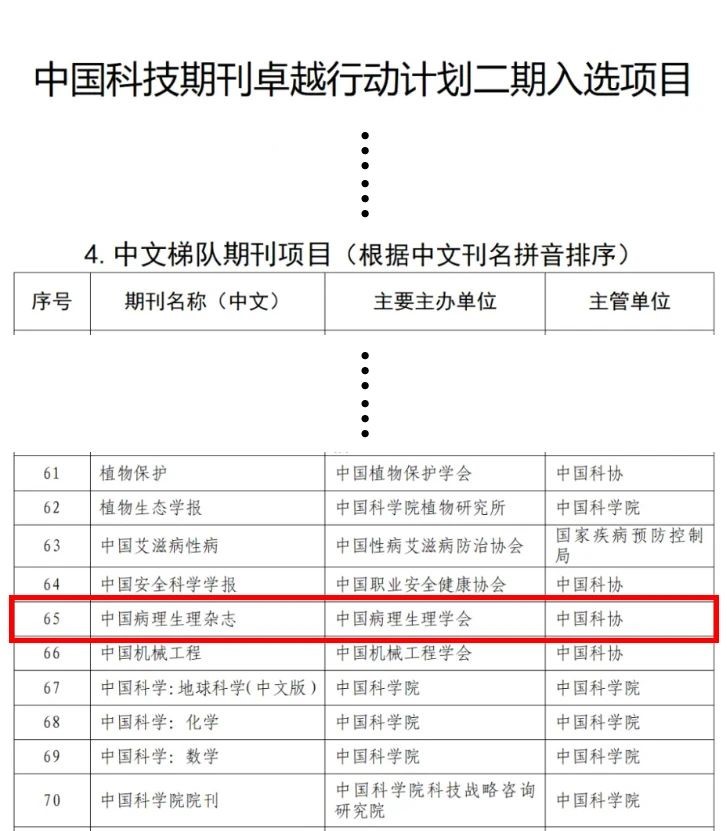 必威平台_必威(中国)一站式服务平台,融媒体中心讯 2024年11月28日,中国科技期刊卓越行动计划二期(2024-2028年)入选项目正式公布,由中国病理生理学会主办、必威平台_必威(中国)一站式服务平台,承办的《中国病理生理杂志》入选中文梯队期刊项目,该项目共评选出国内高水平中文期刊100种,其中学术类90种,科普类10种。