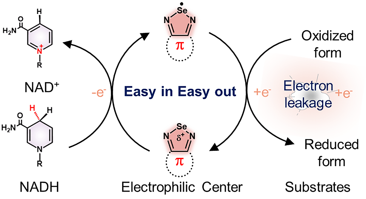 化疗是临床恶性肿瘤的主要治疗方法之一,但其有效性受到选择性差和副作用的限制。科学家们一直在努力寻找新的方法来设计化疗药物,以实现高效且低毒的癌症治疗。癌细胞无限增殖所导致的高水平氧化还原稳态特征为化疗药物的开发提供了机会。针对这一特征,科学家们专注于设计模仿芬顿反应催化特性的药物,以增加氧化应激或设计药物以抑制细胞内抗氧化系统。在该研究中,陈填烽/马丽团队探索了一种新策略:模拟线粒体中电子泄漏的过程,将抗氧化小分子(NADH和GSH)转化为活性氧(ROS)。为了实施这一策略,该团队首次使用强极化的硒和硫原子构建“易进易出”的亲电中心,使NADH和GSH中的活性电子通过自由基中间体快速穿梭,导致大量电子的突然释放,从而促进电子泄漏。特别是,电子穿梭效率随着亲电中心极化特性的增强而提高。这项工作为设计高效化疗药物提供了一种新方法和理论指导,激励化学家在相关结构设计中,给药物开发者带来新思路,并为临床肿瘤治疗带来新的希望。