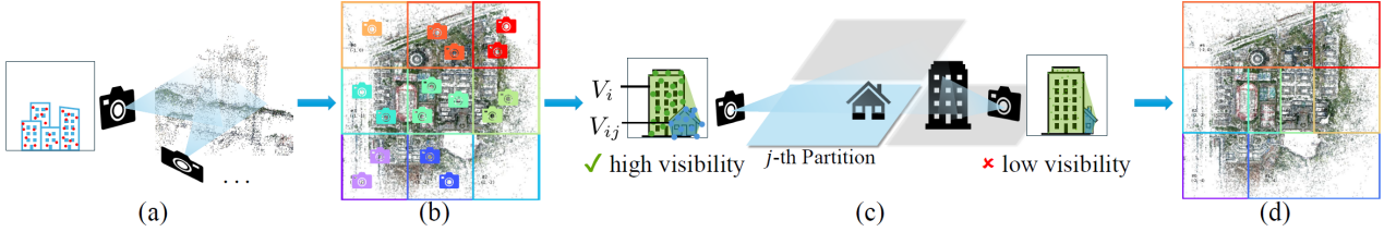 基于可见性的智能数据分区策略:通过独创的可见性评估算法,精准筛选对分区重建具有贡献的影像数据,大幅削减训练阶段的数据冗余量,重建效率大幅提升。