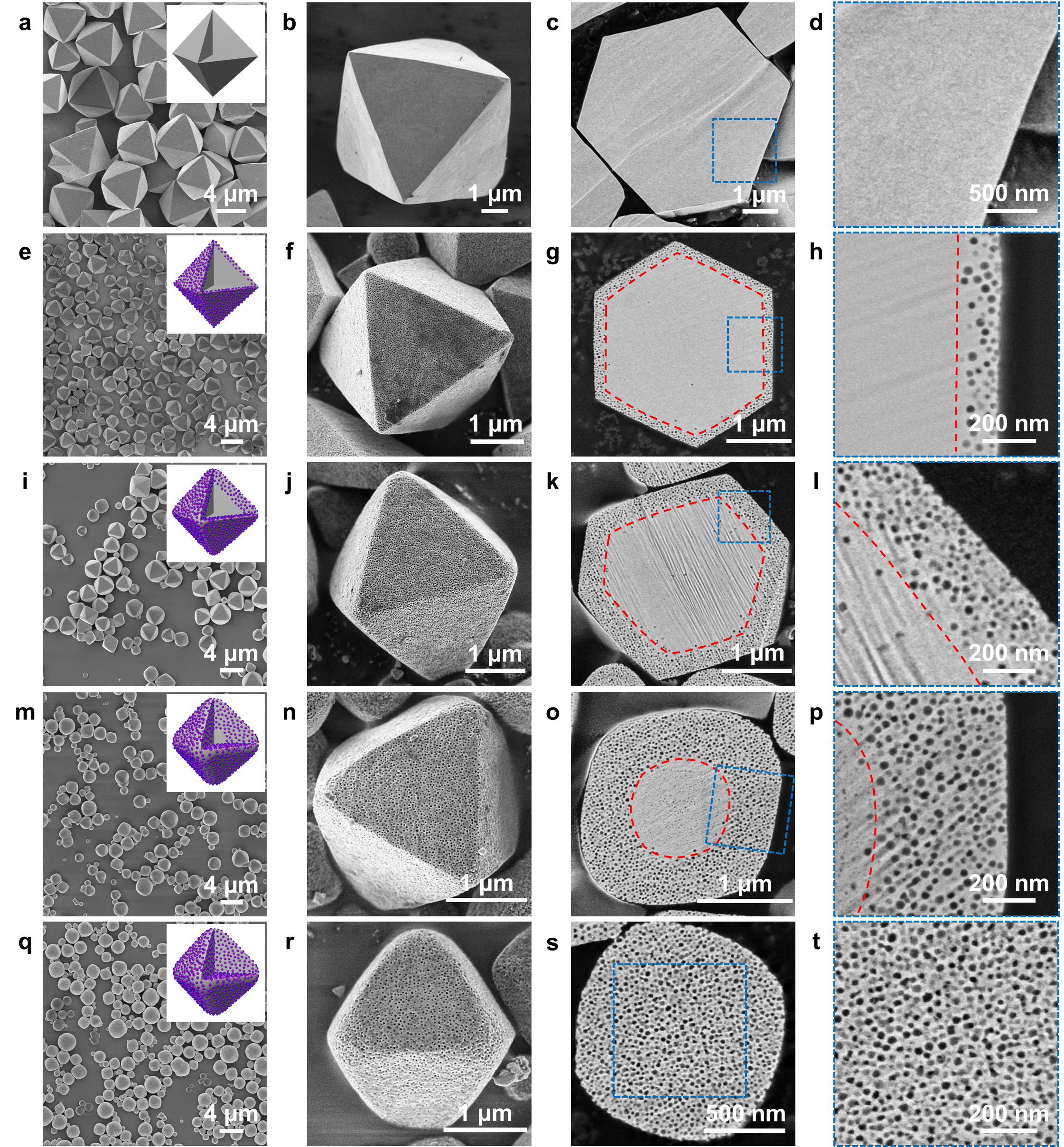 高分辨SEM研究为G51-B100纳米粒子在Cu2O晶体中的成功内嵌提供了直接证据(图3)。通过氩离子束刻蚀获得的晶体截面的SEM图像表明,随着G51-B100浓度的提高,纳米粒子在Cu2O晶体中的内嵌深度和程度逐渐增加(图3)。